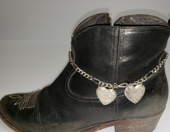 Silver chain wear on boot .has 2 etched hearts hanging..clasp loop closure ...boots not included.