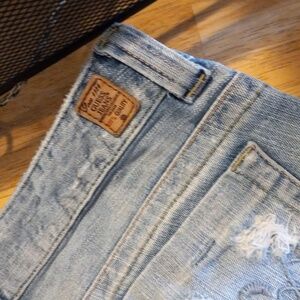 boot cut distressed blue jeans see all photos back bottom of boot cut zoom in better to see there is some stain