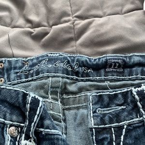 LA Idol jeans with holes in them. Very comfy. WORN A FEW TIMES. They’re too short for me now