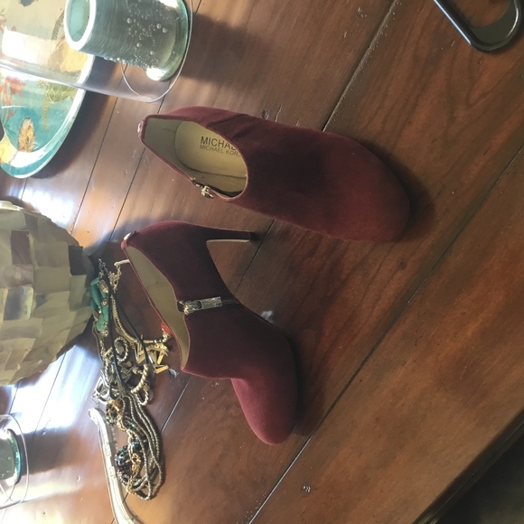 3” low boot shoe with inside zipper in burgundy suede. Worn once
