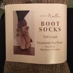Tall length boot socks with detachable fur poms. One size fits most!