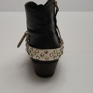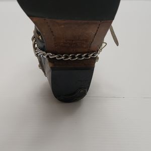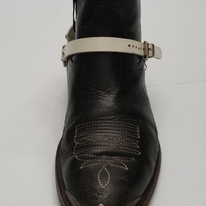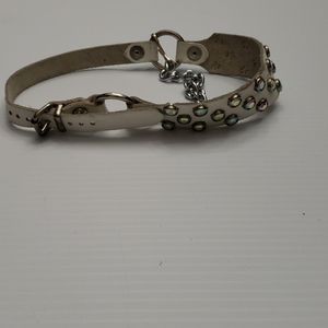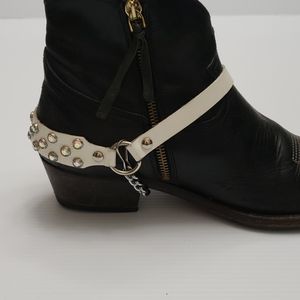 White leather boot strap with irredescent rim set rhinstones ..has tons of holes to adjust to boot size..looks nice peeking out past jeans..boots not included!