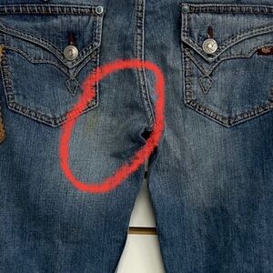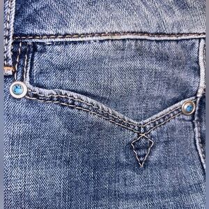 BootHeel Trading Company by Sheryl Crow Memphis Jeans. Jeans are in good condition with one flaw at the hem. (See pictures). Have slight distressing, flap button back pockets, and turquoise accents. The details on this Jean make it a stand out.