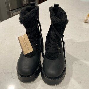 NWT woman’s BootLegger Leather Sherpa Lined Chunky Lug Lace Up Winter Boots