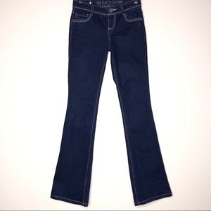 Dark Wash Bootcut Jeans. Size: 1. Great Condition. Brand: Behold (Amber). Material: 81% Cotton, 17% Polyester & 2% Spandex.