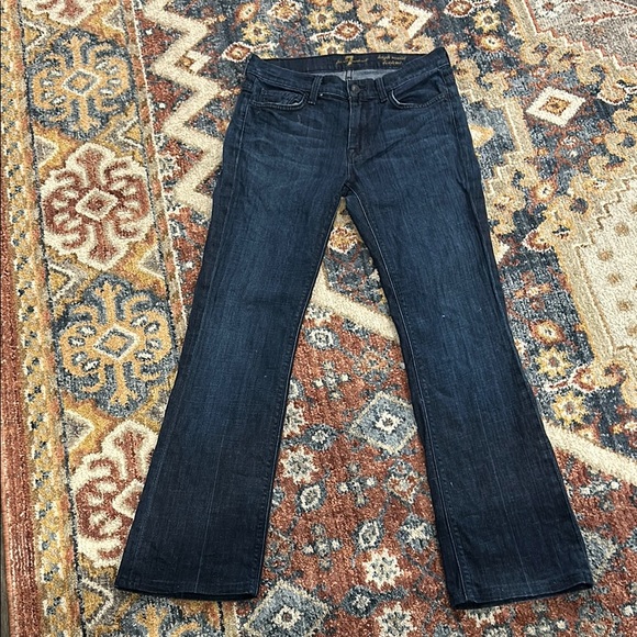 High waist bootcut jeans in dark indigo. Classic and versatile style.