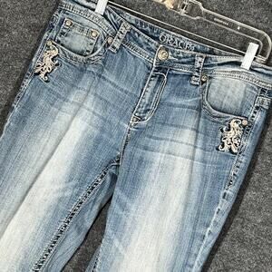 Grace In LA Easy Fit Bootcut Jeans Womens Size 30 Blue Embellished Embroidery Western