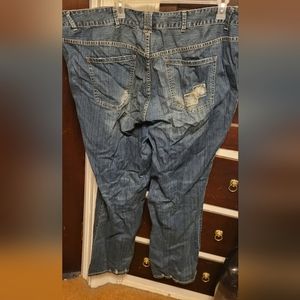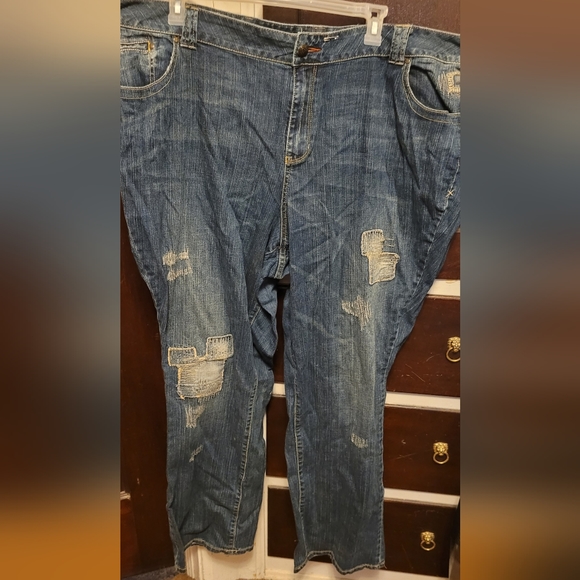 distressed patchwork bootcut jeans