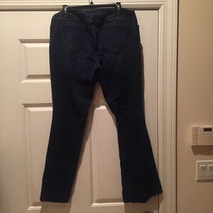 Size L, Liz Lange Maternity Jeans. They do have some wear, I lived in these jeans during my pregnancy. So comfortable! Belly band comes all the way up.