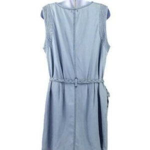 Bootheel Trading Co Blue Sleeveless Scoop Neck Belted Chambray Denim Dress Womens Size Large