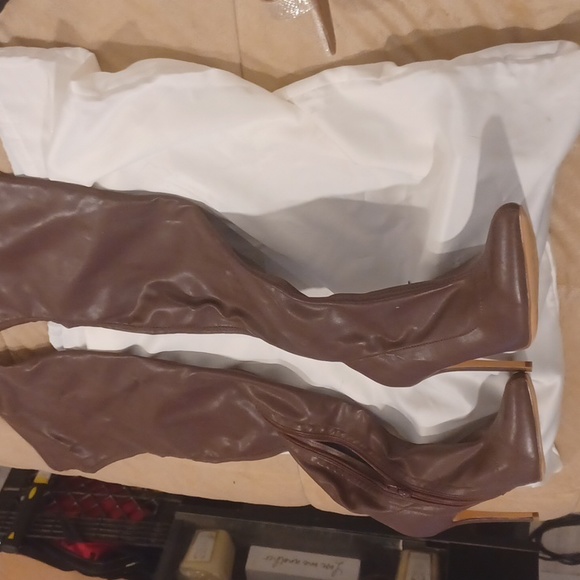 leather thigh high heel boots. Never worn, only in my house trying on outfits lol.
