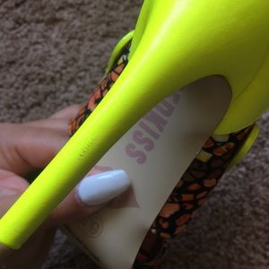 Beautiful 4 inch heels with box. Does have one lil scratch on the back of the heel (shown in pic) . Worn once just been sitting in my closet