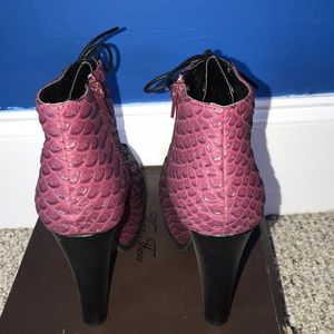 Burgundy / Black Bootie. Snake skin detail with block heel (Brand New)