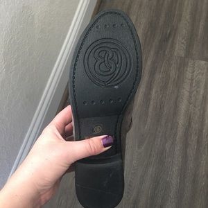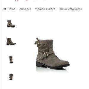 Gray vegan suede, gold accent clips. These booties have never been worn and are in perfect condition.