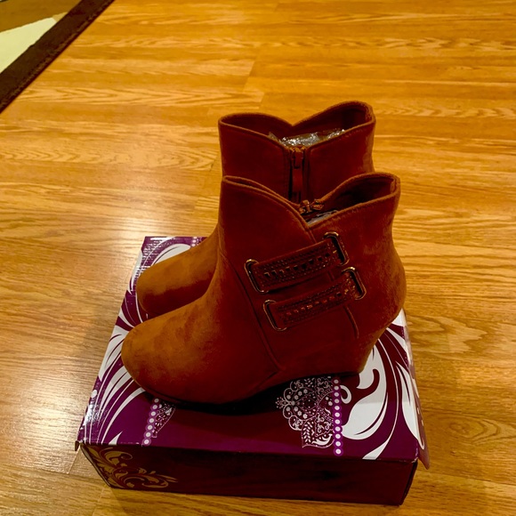 These wedge heeled booties goes well with jeans or a cute casual dress or skirt. Even though this shoe size is 8 it actually feels more like a 7.5.