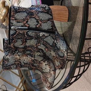 Black Multi Color Snake Textured Bootie