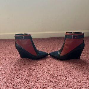 French Connection 3.5 inch heel wedge booties. BLK/WHSKY/NTSHD