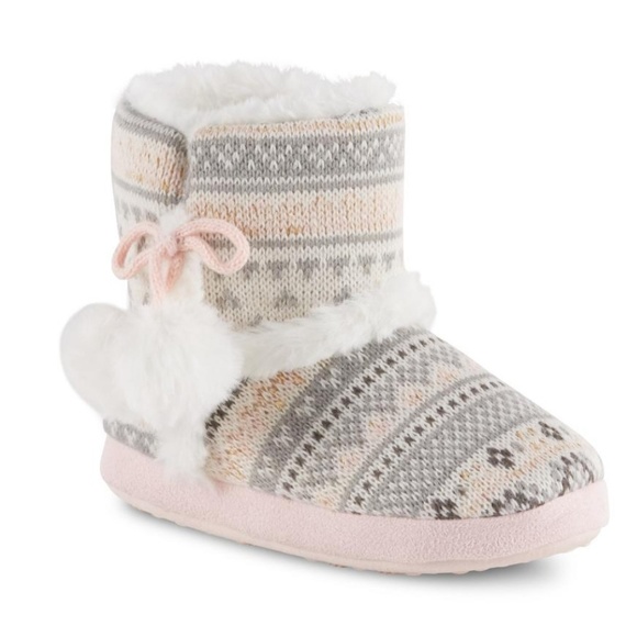 Very cute and soft Bootie slippers. Crafted with a comfy fair isle sweater knit. Soft plush lines the inside of the bootie. Two fur mobile fur bobbles. Great for the cold winter. ๐๐๐ Bundle and Save!!!