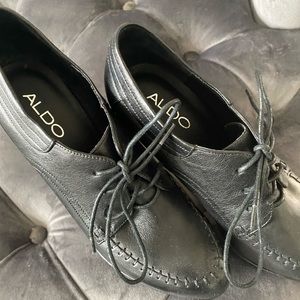 Aldo bootie pump. Worn once but a tiny scuff on front of shoe. Can be polished and fixed.