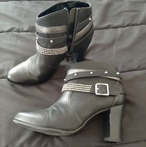 Black booties with silver accents, comfortable heel height only worn 3 times. Jennifer Lopez brand size 9.