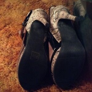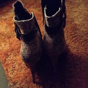 Brown, black and snakeskin closed toe bootie heel. Only wore a few times last year goes really well a casual outfit