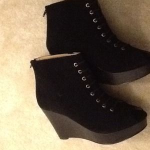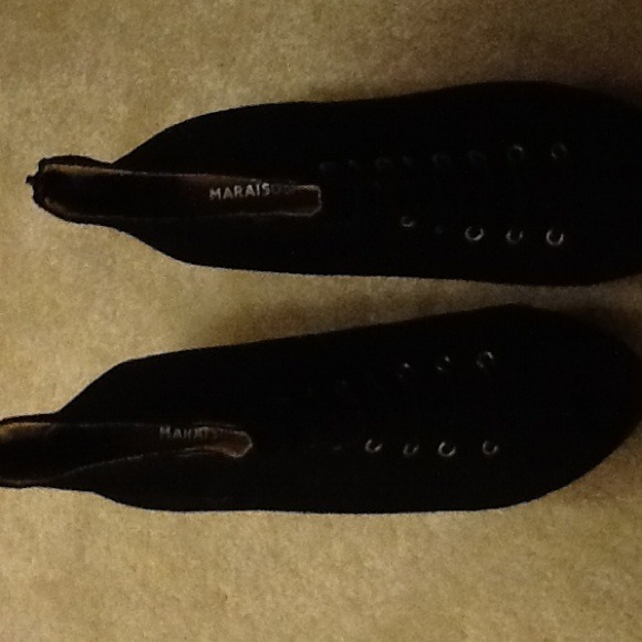 Suede booties in black ..size 8 ...zipper in the back..brand new by Marais USA..NY