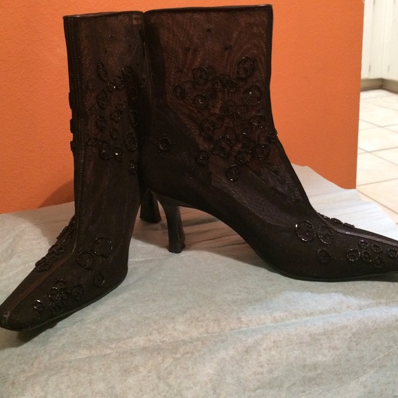 Black Mesh booties 2.5 inch heel zipper back. Worn a few times