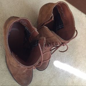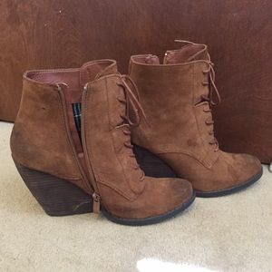 Lulu's online boutique booties. Worn three times with unnoticeable scuff on right heal. Very comfy and were my favorite but my feet seem to have shrunk :(