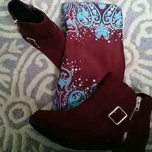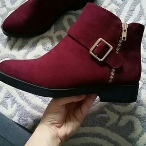 Burgundy completely new, never worn booties. Gold details. Does not have tags, but does still have stickers on.