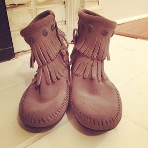 Minnetonka Brand Booties: Grey, size 6. Excellent condition. Only worn a few times (maybe twice).