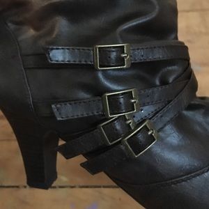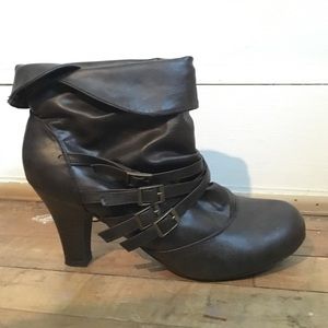 Brown Madden Girl booties with short heel, like new.