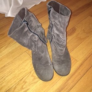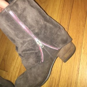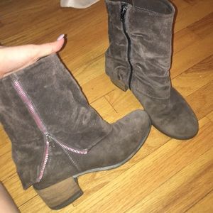 Suede booties with little heel, worn but inner lining has been replaced with leather.