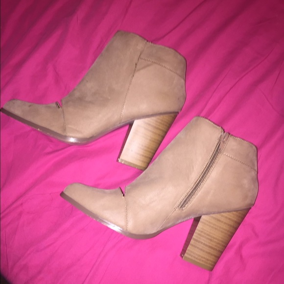 Cute booties. Open slit above toes. Taupe color