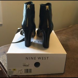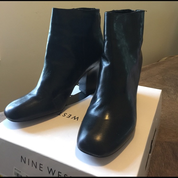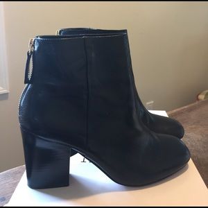 Stylish black leather ankle boots with gold zipper back for easy on and off. Super comfortable . Perfect for the office or a night out or for simply walking through town. Basically new.