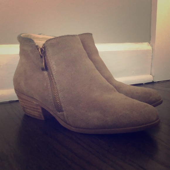 Tan booties! Very comfortable! Minor scuffs on heel! Worn handful of times!