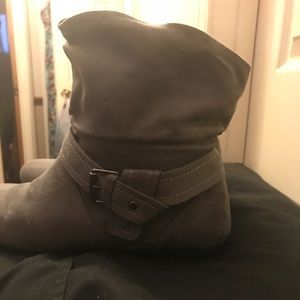 grey suede buckle detail on outside