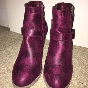 Women’s size 7 1/2 (fits 8). Worn a couple of times but still in great condition. A little scuffing in the heal but nothing noticeable. Very comfortable and cute buckle detail.