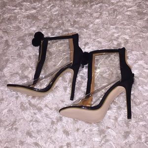 Brand new never worn! Fab transparent peep toe booties with pompons