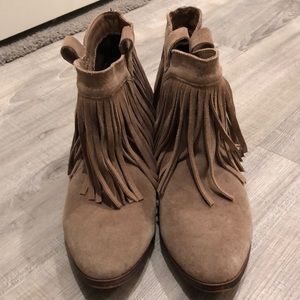 Tan booties with tassels