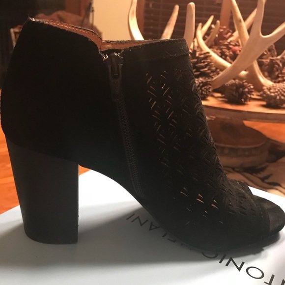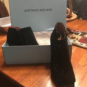 Antonio Melani, style Jonah. Perfed Peep Toe , side zip. 3 1/2 inch chunk heel. Worn once for wedding.