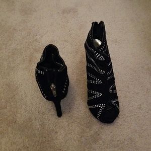 Black studded looking peep toe booties, worn once. Size was too big.
