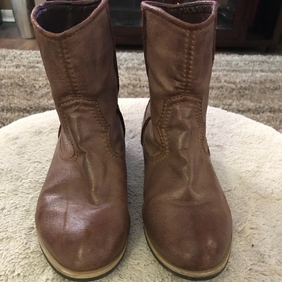 Brown booties with short heel. Barely worn. Slip on