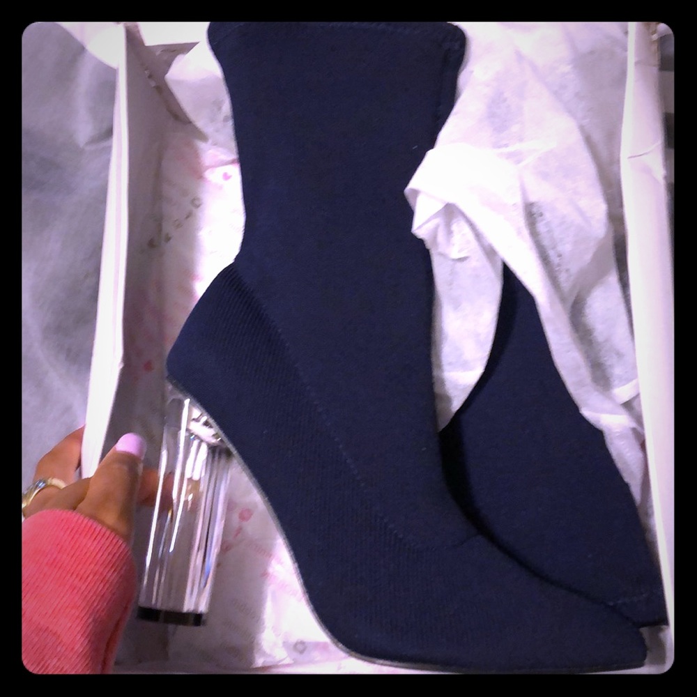 Navy Blue Booties with a clear heel. Never worn.