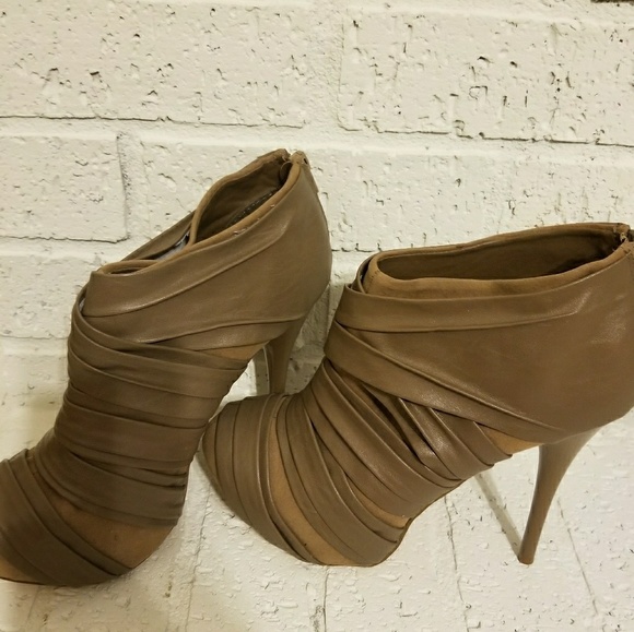 Qupid paired tan leather heeled booties
