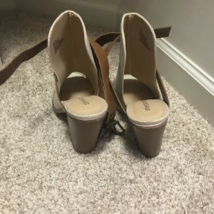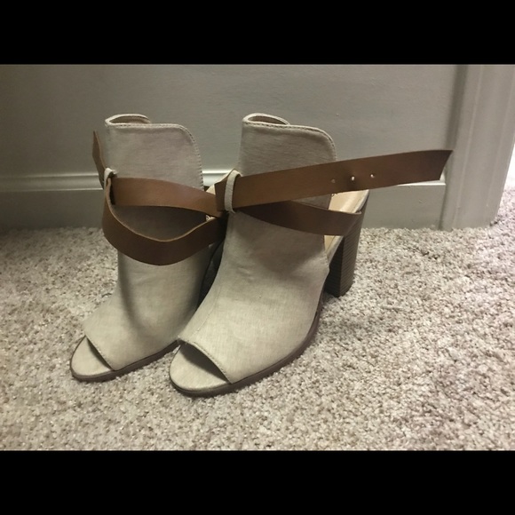 Cream and tan ankle booties open back