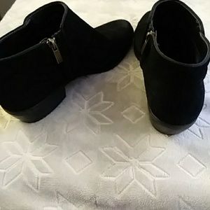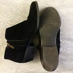 Totes New York black suede ankle boots with brass zipper, comfort and style!