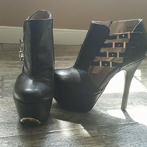 Black and Gold platform booties with buckled sides (zip inside). Worn once or twice. Basically NEW and most of all comfortable.