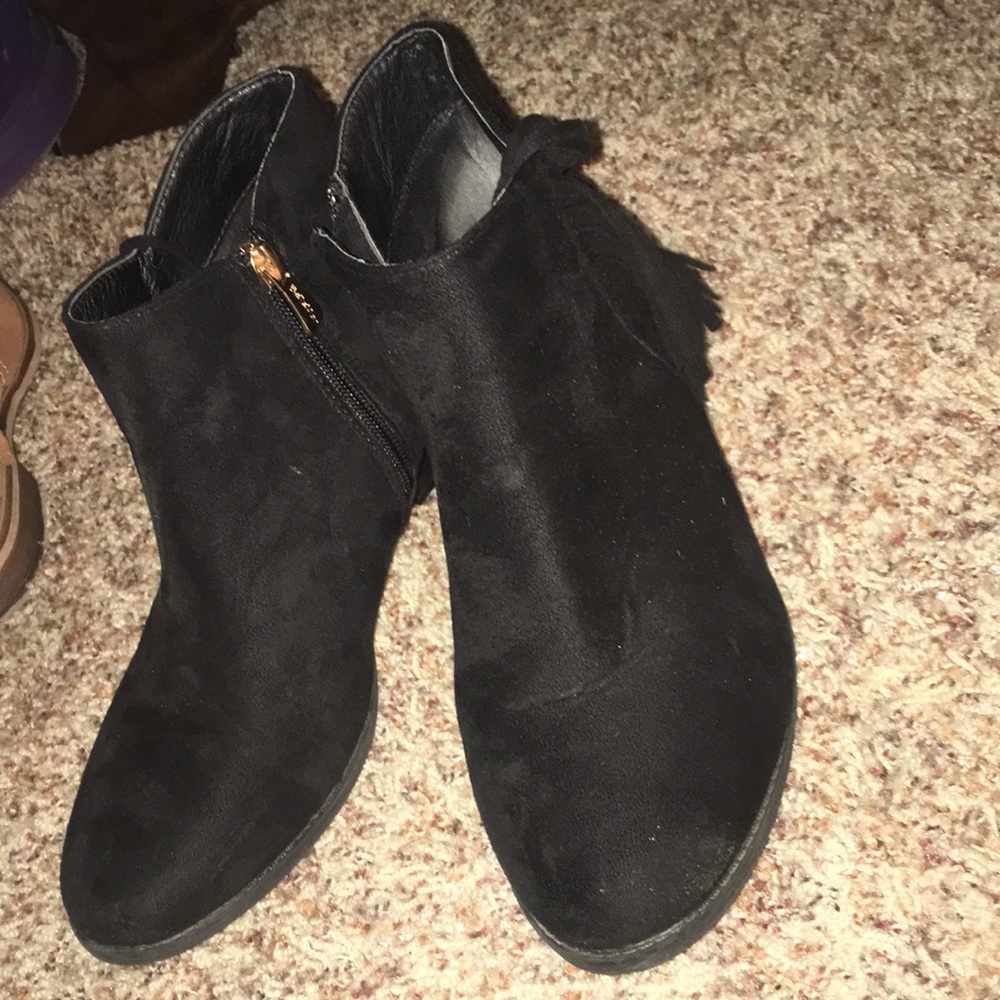 Black, with zipper on the side with fringe