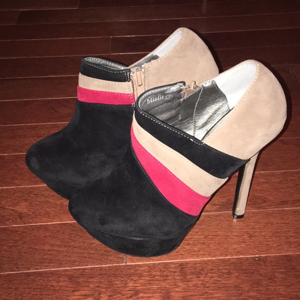 Brand new. Black, Red and Khaki Booties. Size 7.