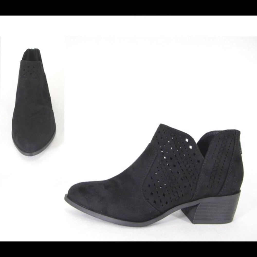 Black ankle booties with zipper in back